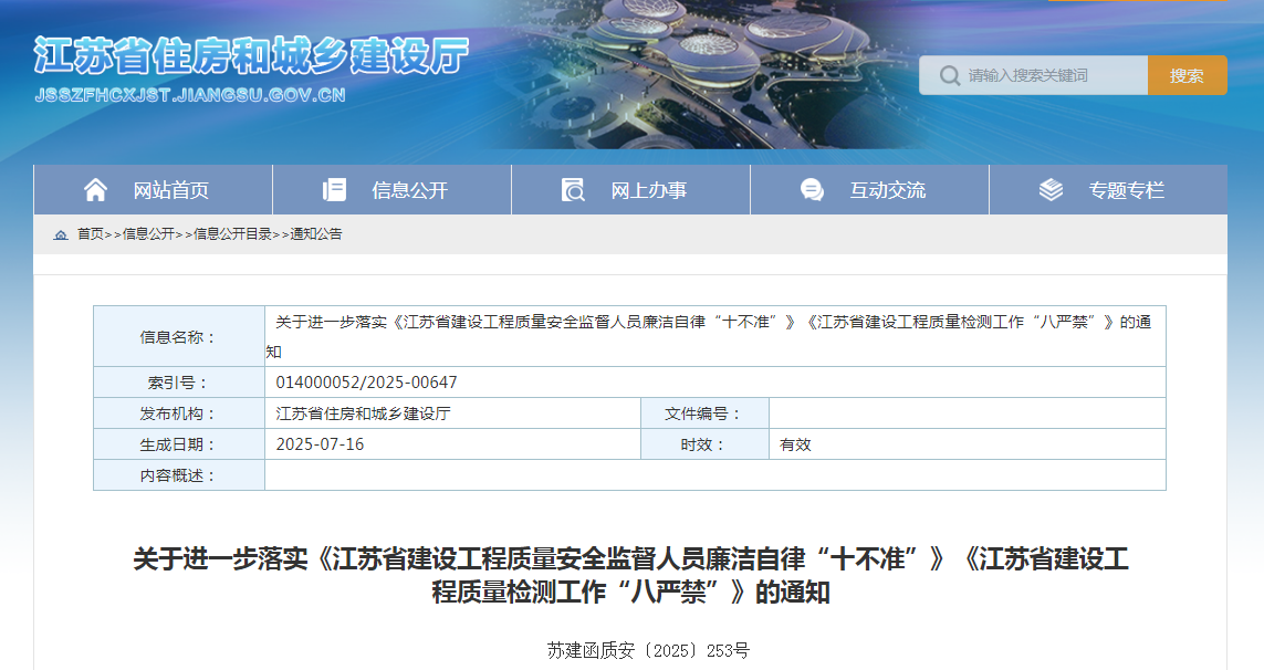 江苏住建厅发文,多举措落实工程质量安全 “十不准”“八严禁”
